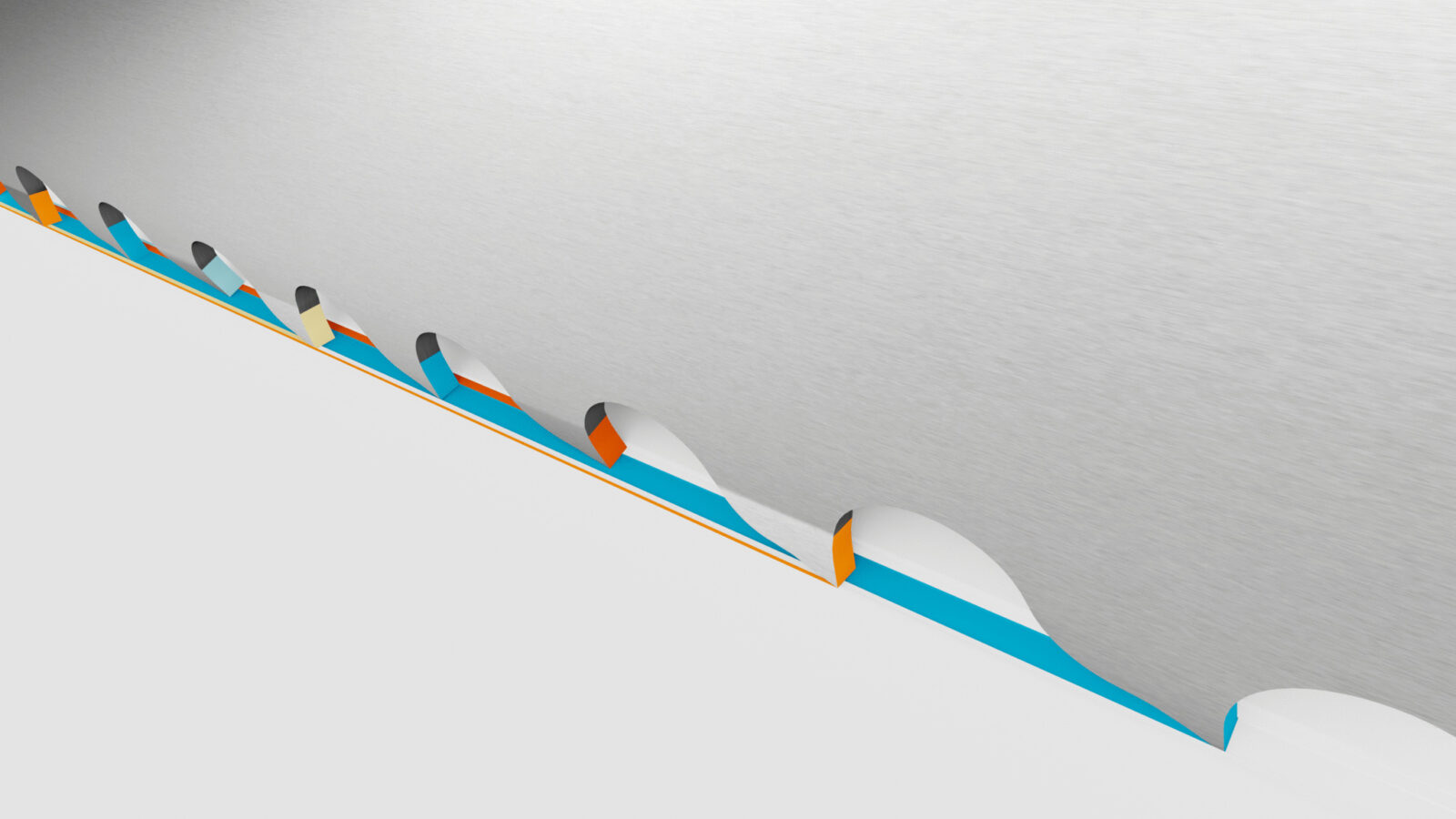 • Special PF tooth shape, reduces out of square cutting, stripped teeth, vibration, pinching consequently less broken blades