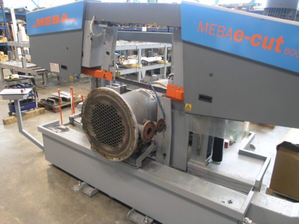 The MEBA 600A NC Automatic horizontal bandsaw with a cutting capacity of 600mm x 600mm, with a heavy duty motor of 9kw and 54mm blade, making this saw a powerful choice for customers with high production requirements. It is energy efficient, with electric drives for clamping and electric ball screw feeding system.