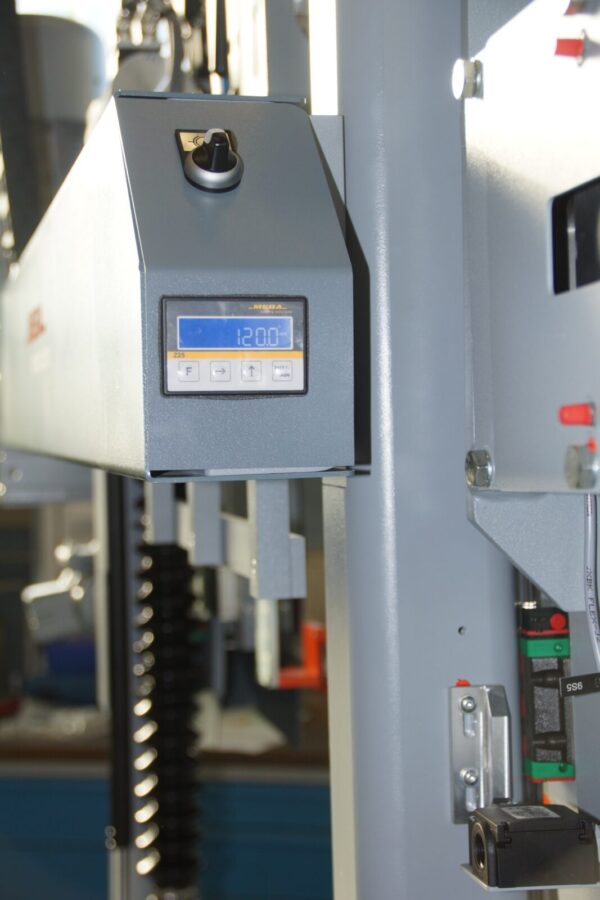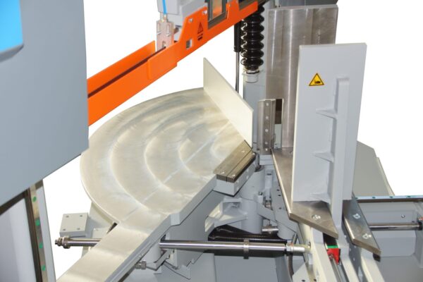 The MEBA ECO 510 DG is a semi-automatic double mitre automatic bandsaw with innovative design and automatic material flexible infeed shuttle system.