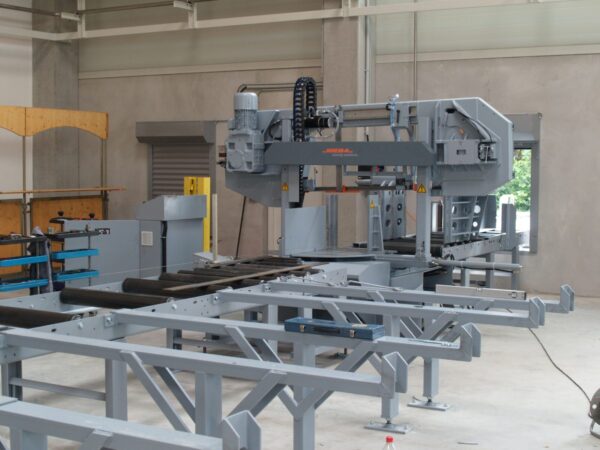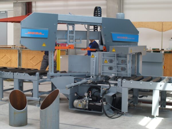 The MEBA ECO 510 DGA is a unique CNC double mitre automatic bandsaw with innovative design and automatic material flexible infeed shuttle system.
