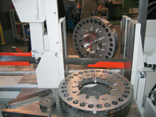 • MEBA high-performance package: electric ball screw saw feeding system with automatic cutting pressure- and feed control, saw blade lowers to the material in rapid speed