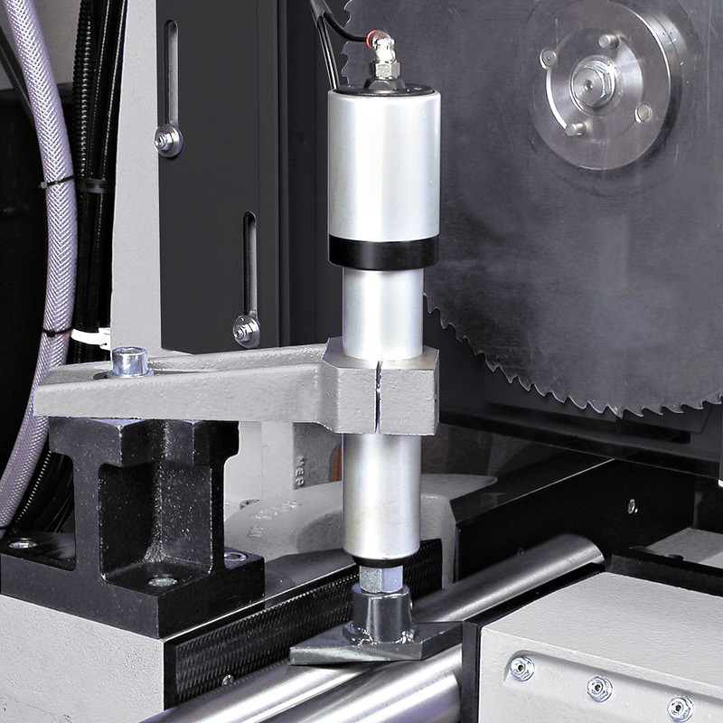 TIGER 372 SX EVO, electropneumatic semi-automatic vertical sawing machine with HSS blade to cut steels mitering from -45° to +60°.