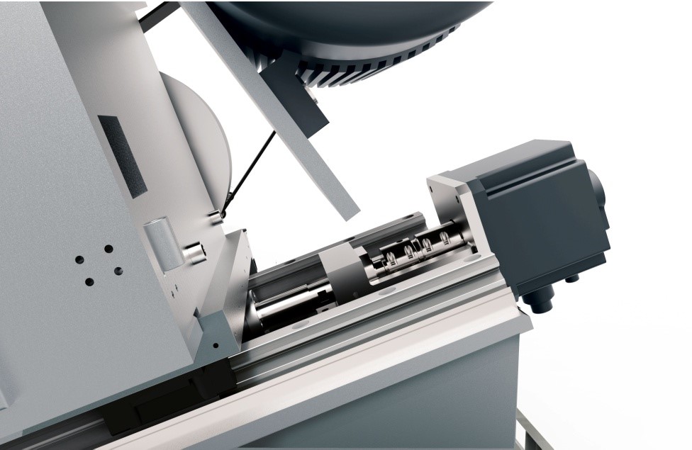 The blade feed is controlled by ball screw and servo motor.